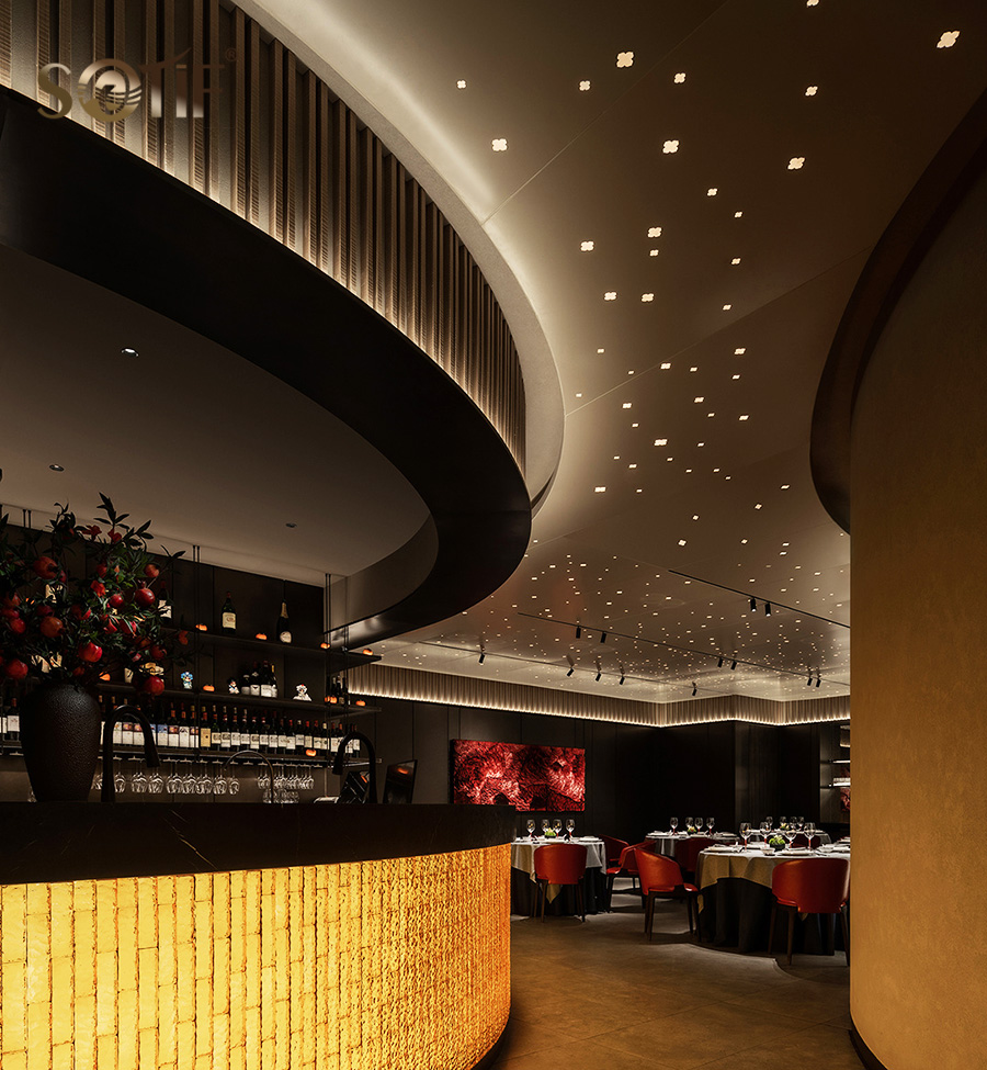 米其林中餐廳不銹鋼蜂窩板星空吊頂...